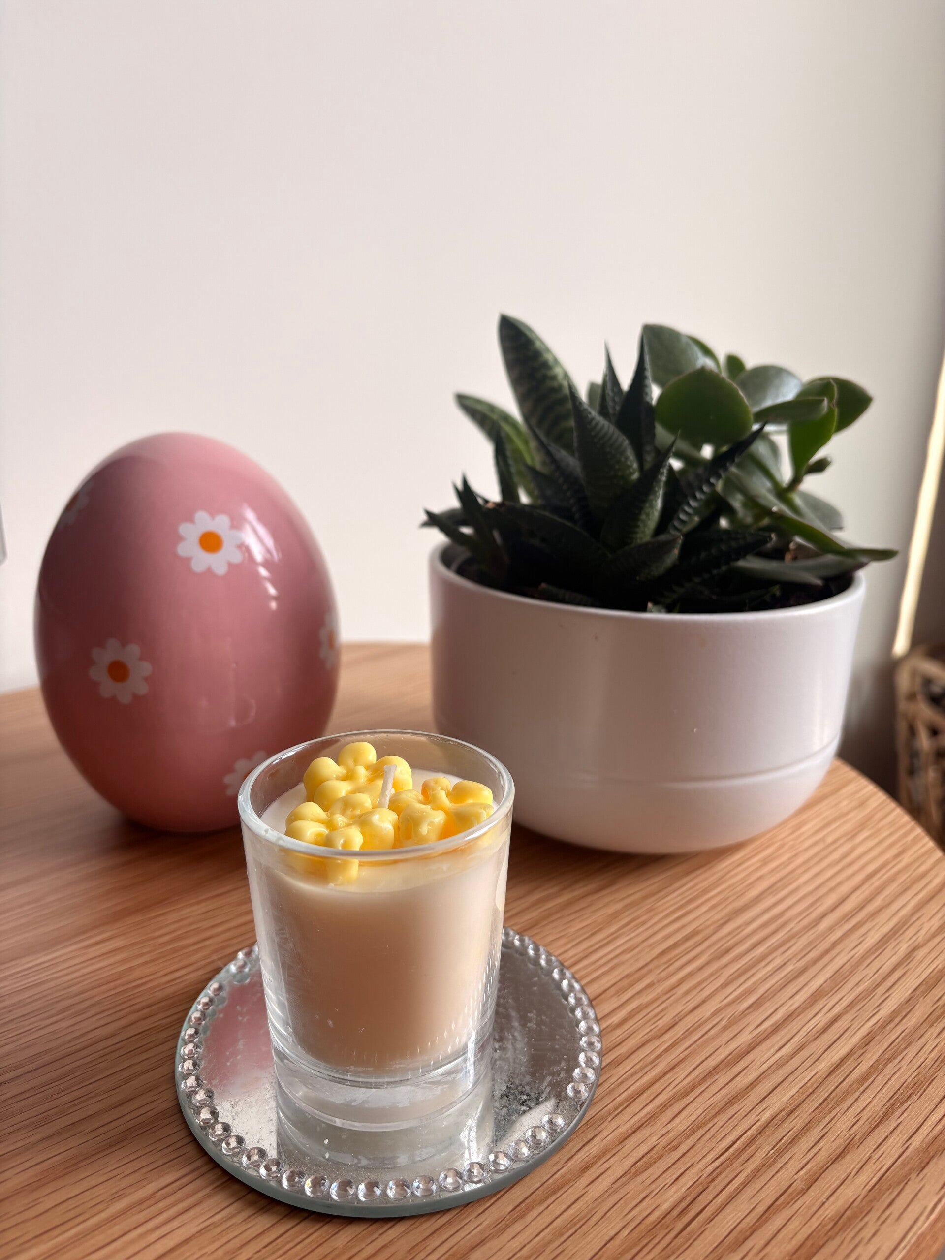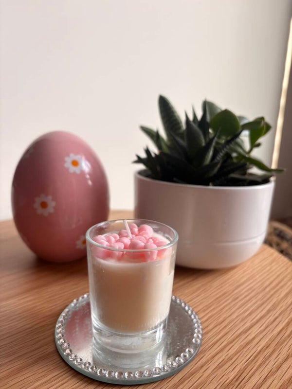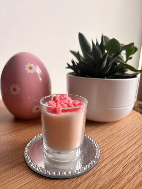 Klein van formaat, groot in charme. Deze minimalistische sojawas kaarsjes zijn afgewerkt met één subtiel bloemetje in een kleur naar keuze. Tijdloos en elegant – perfect als decoratie, cadeautje of om een zachte lentesfeer te creëren.
